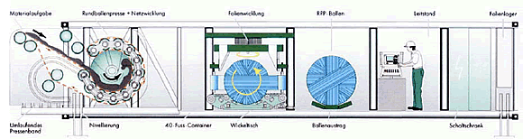 Rundballenpresse zur Ballierung von Müll, Mais und Zuckerschnitzel. |